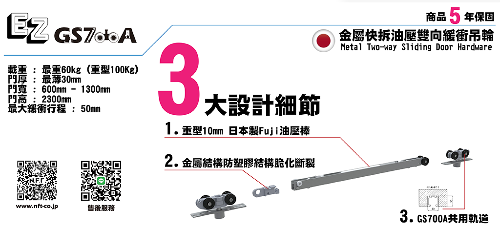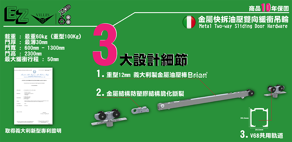 >> 金屬快拆油壓雙向緩衝吊輪系列